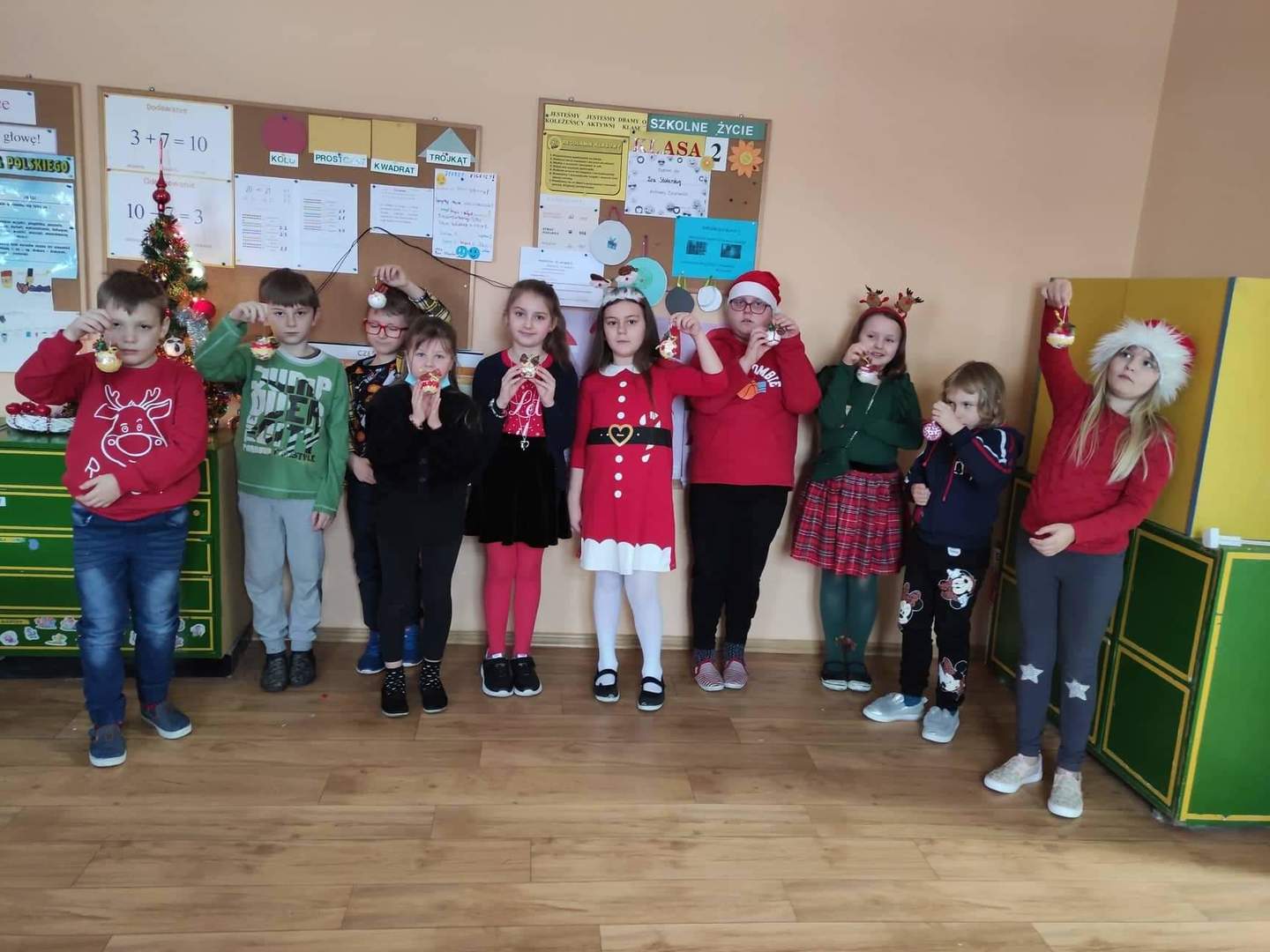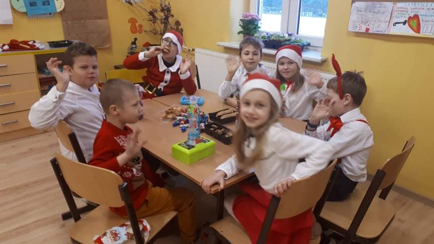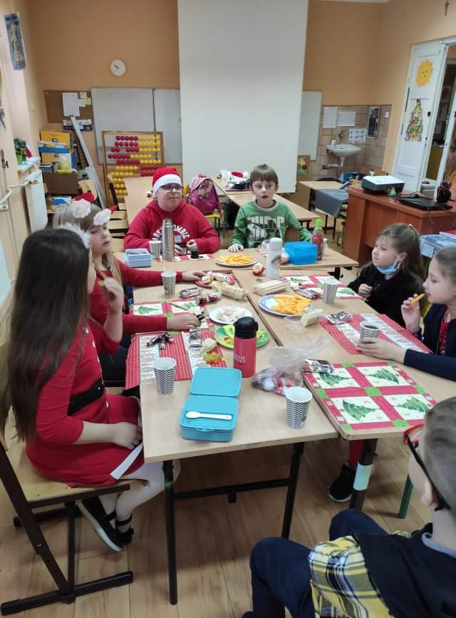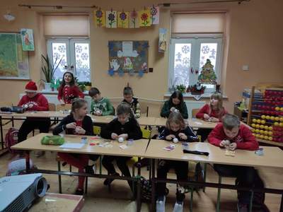 Świętowanie Mikołajek rozpoczęliśmy od warsztatów artystycznych. Polegały one na własnoręcznym wykonaniu bombki. W ciągu godziny powstały niepowtarzalne, błyszczące prace, które będą zdobiły klasowe choinki aż do Świąt.