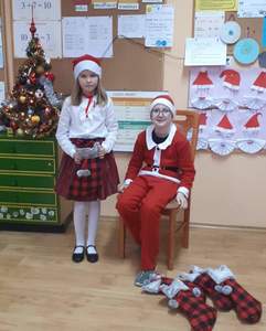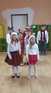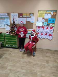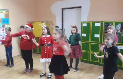 Kolejną atrakcją dnia były przygotowane przez dzieci piosenki oraz układy taneczne, oczywiście związane z Mikołajem i Świętami.