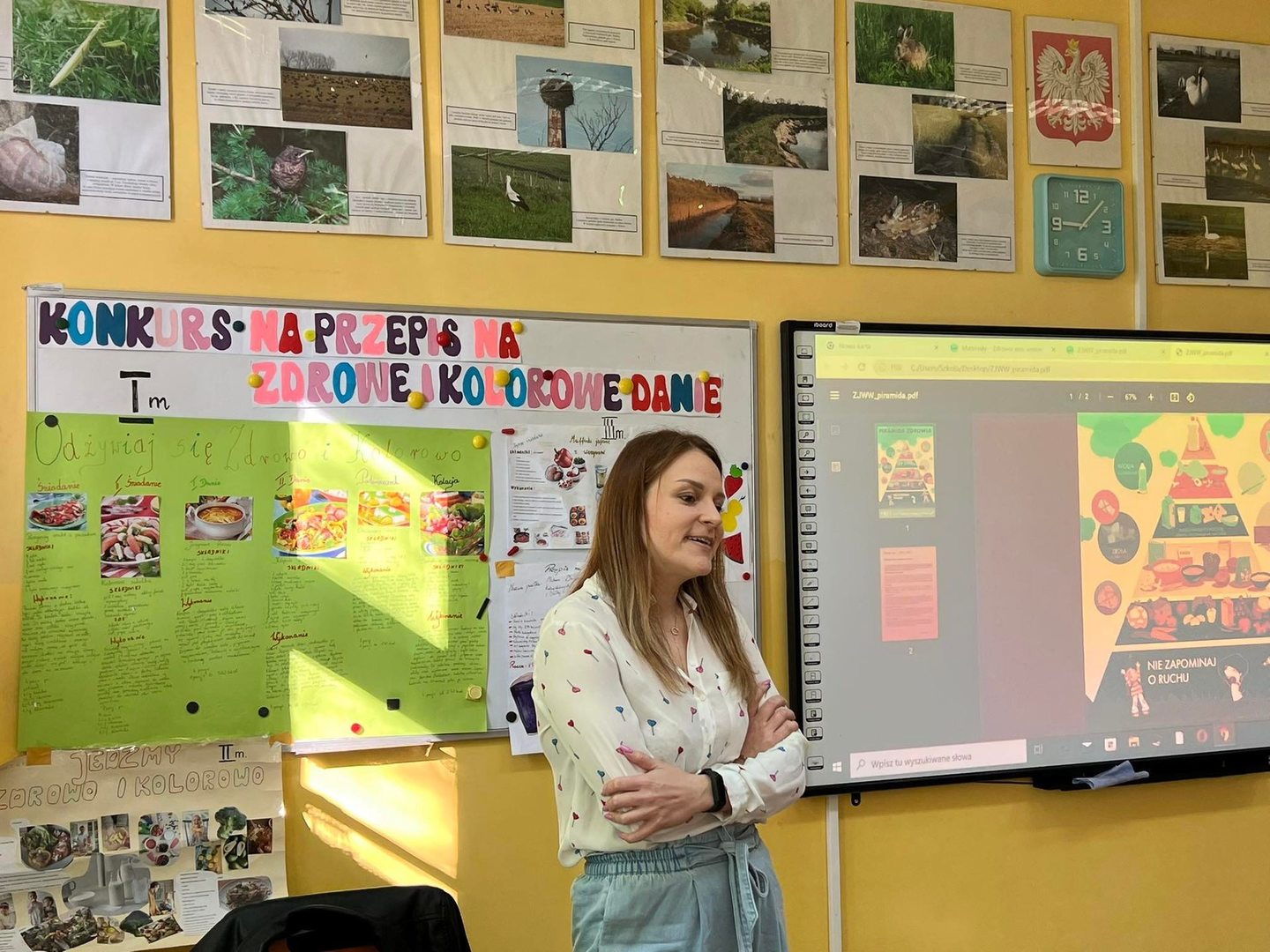 Pani dietetyk Natalia Topólniak opowiada dzieciom i młodzieży