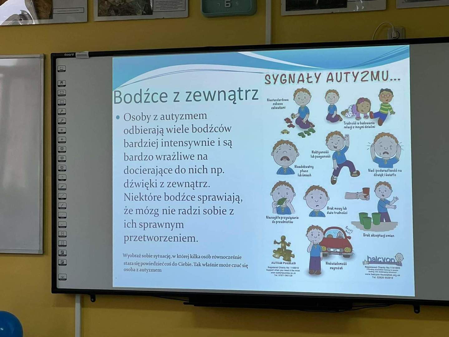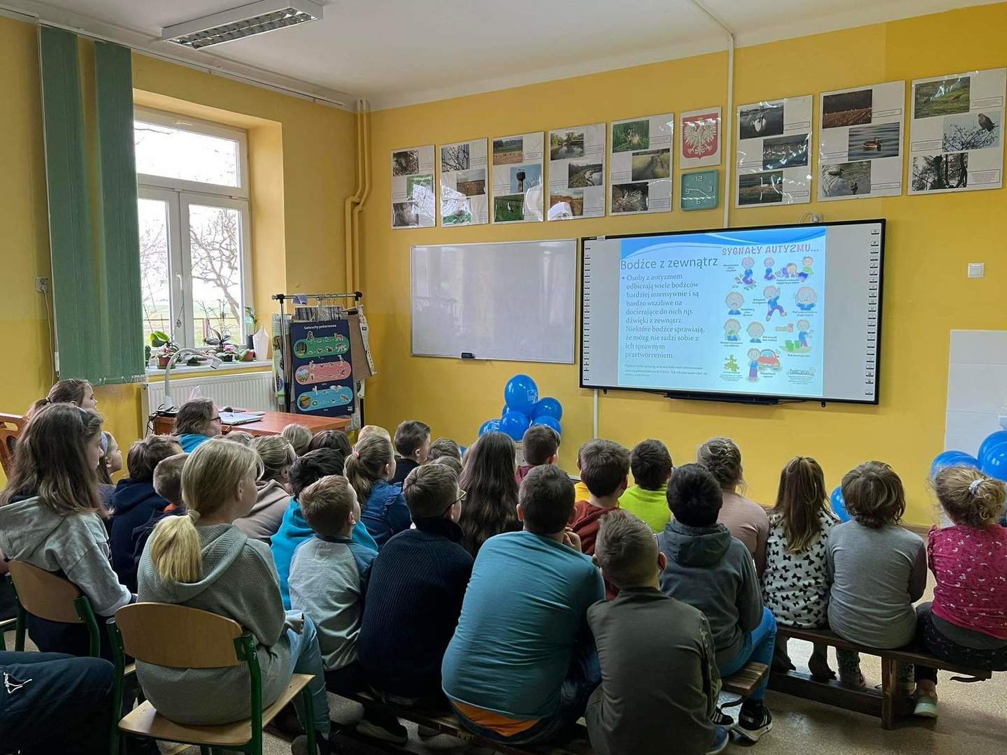 Z uwagi na to, że w tym roku dzień ten przypada w sobotę wydarzenie obchodziliśmy dziś. W szkole odbyły się zajęcia poświęcone tematyce autyzmu przygotowanaeprzez p. Karolinę Serafin, pedagoga szkolnego. Uczniowie i nauczyciele ubrali się na niebiesko, gdyż to kolor solidarności z autyzmem.