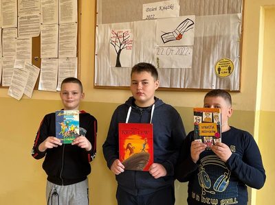 Święto wszystkich czytelników i miłośników książek. "Książki kochają każdego, kto je otwiera, dając mu poczucie bezpieczeństwa i przyjaźń, niczego w zamian nie żądając..." Cornelia Funke W miniony piątek obchodziliśmy "Światowy Dzień Książki" - święto ogłoszone przez UNESCO w 1995 roku. Ideą tego dnia jest popularyzacja książki i czytelnictwa. W ramach wydarzenia uczniowie klas 4 i 5 tworzyli plakaty promujące czytelnictwo. W czasie przerw uczniowie wzięli udział w akcji „Wymień się książką”. W wydzielonym miejscu biblioteki ustawiona była półka z książkami, które uczniowie już przeczytali i chcieliby je wymienić na inne, przyniesione przez innych uczniów. Aby zachęcić dzieci do czytania p. Marzena Majtczak czytała z uczniami klasy fragmenty ich ulubionych książek. Odbyły się również prezentacje wybranych książek. . Była to ciekawa przygoda z książką, która, mam nadzieję, zachęciła do dalszego czytania.
