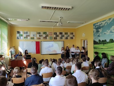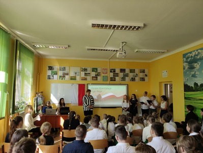 Dziś w naszej szkole upamiętniliśmy 231 rocznicę Konstytucji 3 maja. Uroczystość uświetniła Wójt Gminy Kutno Pani Justyna Jasińska.