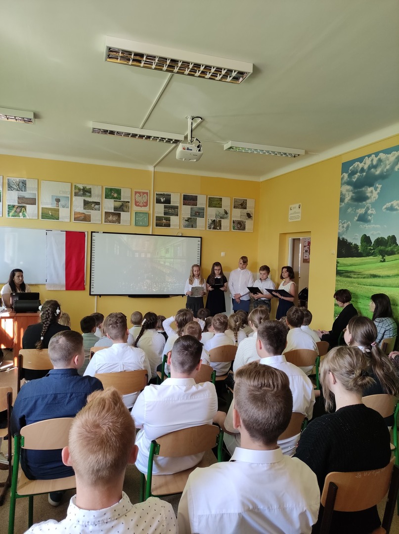 Pani Wójt podkreśliła, że pielęgnujemy pamięć o ważnych wydarzeniach historycznych, uczymy miłości do Ojczyzny. Podziękowała uczniom za przygotowanie uroczystości i zaproszenie do naszej szkoły, za miło spędzony czas.