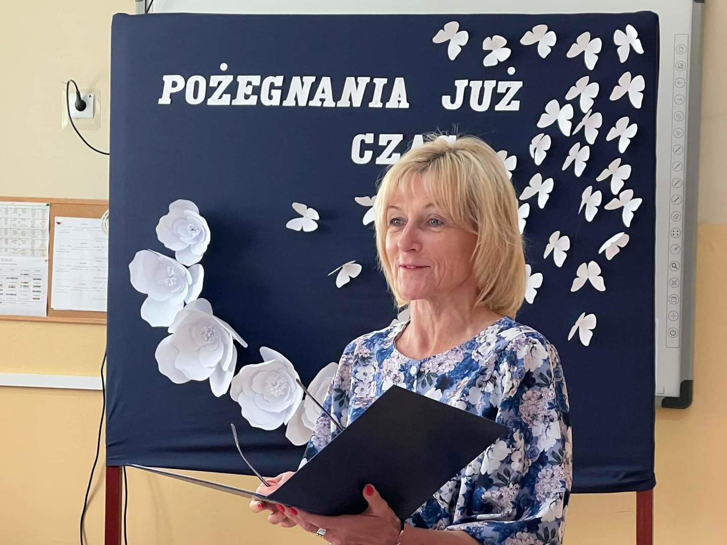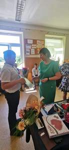 Dyrektor szkoły Beata Cieślak w swoim wystąpieniu podsumowała kończący się rok szkolny, zwracając uwagę na wkład pracy nauczycieli, zaangażowanie uczniów w naukę i życie społeczności szkolnej. Podziękowała też pracownikom obsługi i administracji, którzy zawsze służyli nam pomocą. Zgromadzonym życzyła udanych, a przede wszystkim bezpiecznych wakacji i miłego wypoczynku.
