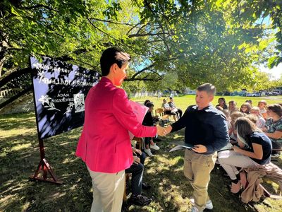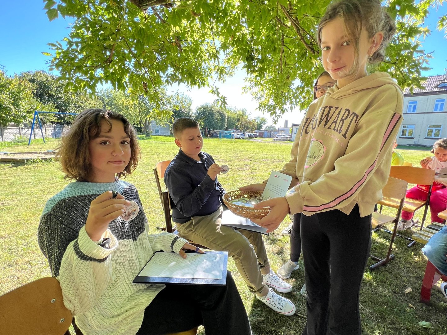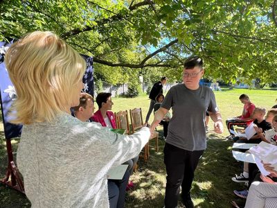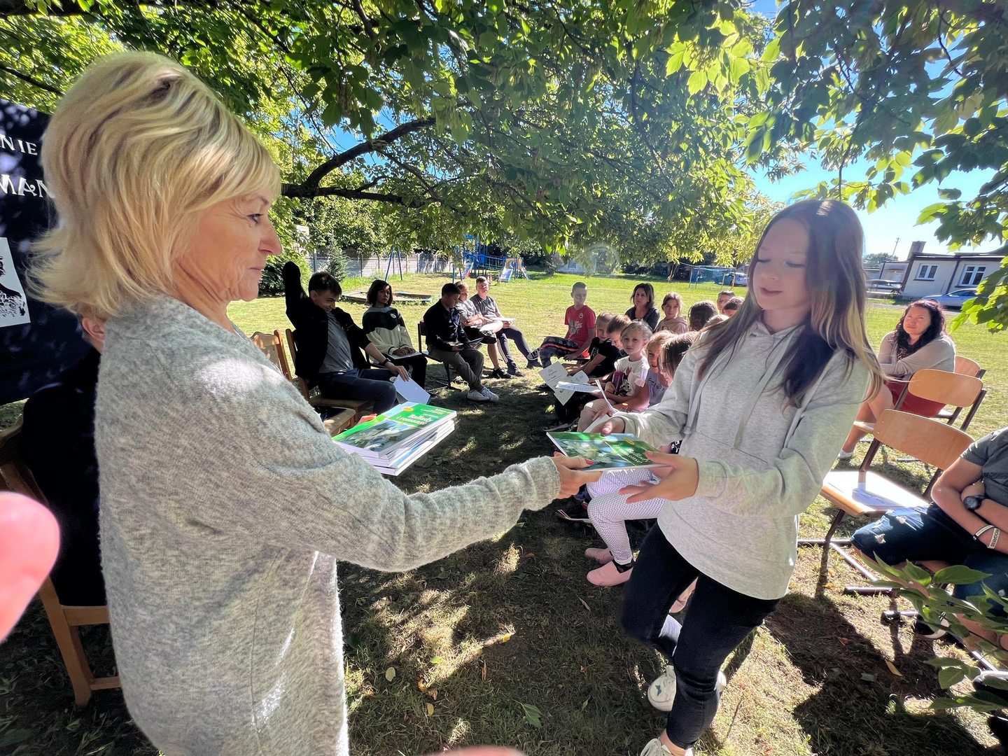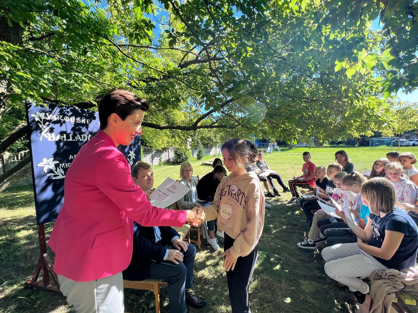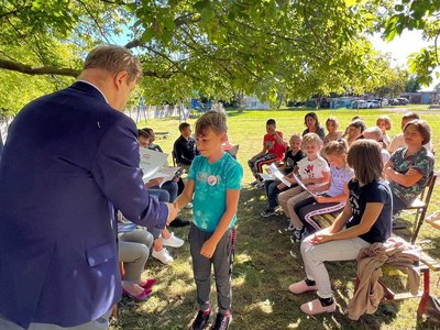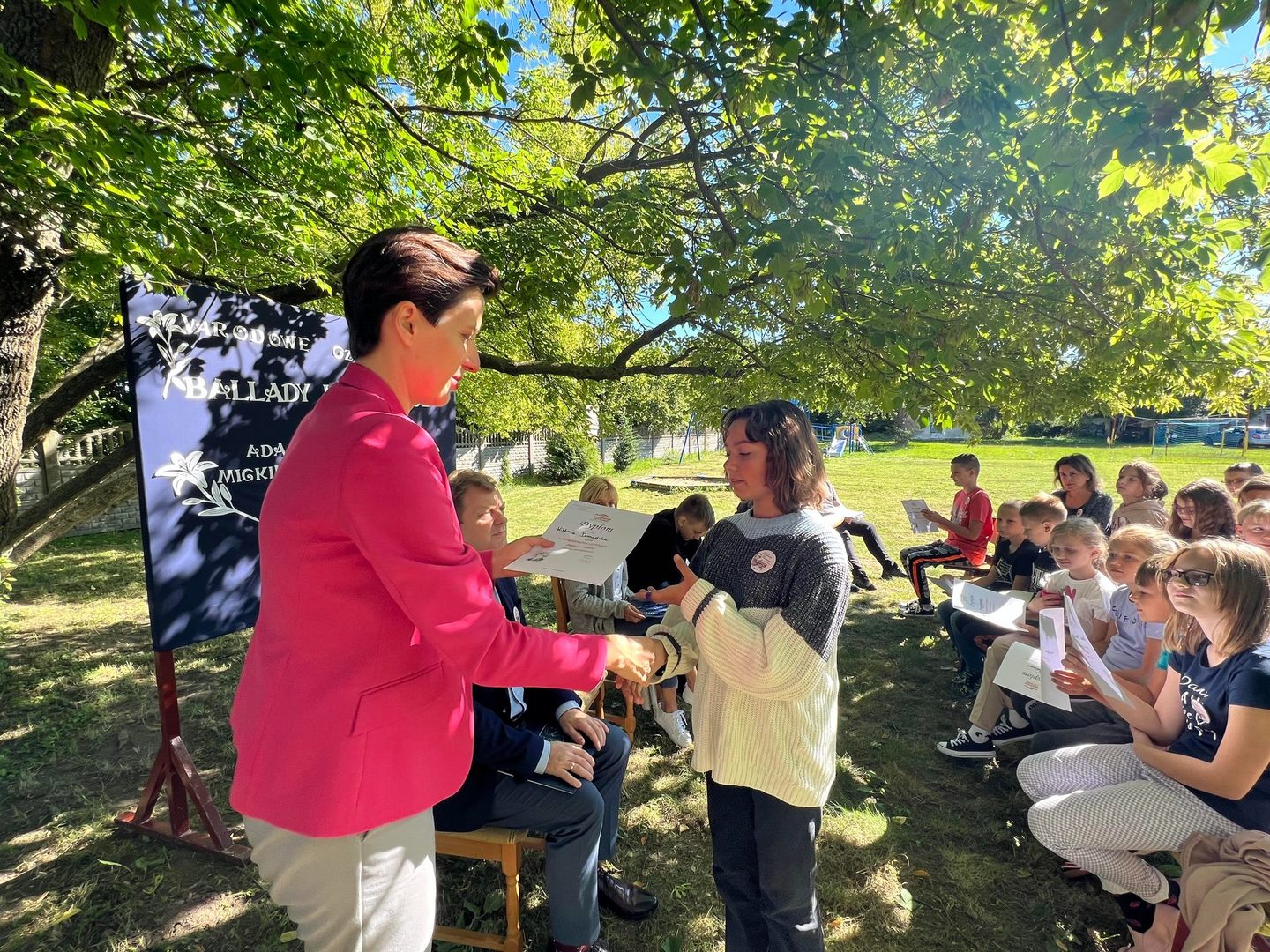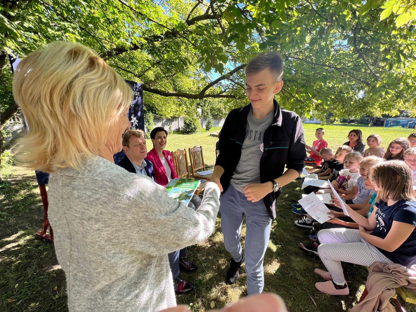 Dziś w przedpołudnie w plenerze na terenie Szkoły Podstawowej we Wroczynach odbyła się XI edycja Narodowego Czytania. Tegoroczna lektura - "Ballady i romanse" Adama Mickiewicza - to tom, który wyznacza początek polskiego romantyzmu. Został wydany w 1822 roku w Wilnie. We wspólnym czytaniu wybranych utworów – „Świtezianki” i „Powrotu taty” udział wzięli zaproszeni goście: p. Liliana Urbańczyk- Wójcik, Dyrektor Centrum Kultury Gminy Kutno, Robert Witczak, Dyrektor Centrum Usług Wspólnych, szkołę reprezentowały: Beata Cieślak, Dyrektor SP Wroczyny i Marzena Majtczak, nauczycielka języka polskiego oraz organizatorka akcji oraz uczniowie klas4- 8. Wszyscy uczestnicy akcji Narodowego Czytania zostali nagrodzeni pamiątkowymi dyplomami, a najaktywniejsi egzemplarzami książki z dedykacją od Wójt Gminy Kutno Justyny Jasińskiej. Dzisiejsze spotkanie było wspólnym świętem czytelnictwa. Wszystkim, którzy zdecydowali się odczytać fragmenty ww. ballad serdecznie dziękujemy za miłe spotkanie i do zobaczenia za rok!