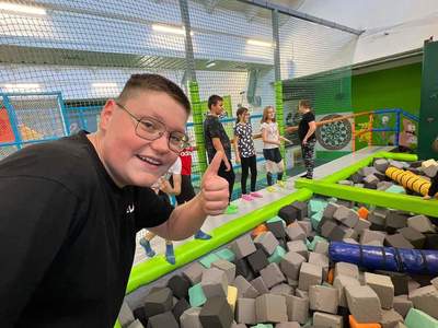 W poniedziałek uczniowie klas 4-8 byli na typowo sportowej wycieczce. Pojechaliśmy do parku trampolin w Płocku. Uczniowie, pod okiem instruktorów, wykonywali różne aktywności na trampolinach: skakali do basenu z piankami, grali w zbijaka, walczyli na kładce, robili wsady do kosza, wykonywali też akrobacje na drążkach, wiszącej szarfie i hula hop. Zmęczeni i zadowoleni wróciliśmy do szkoły.