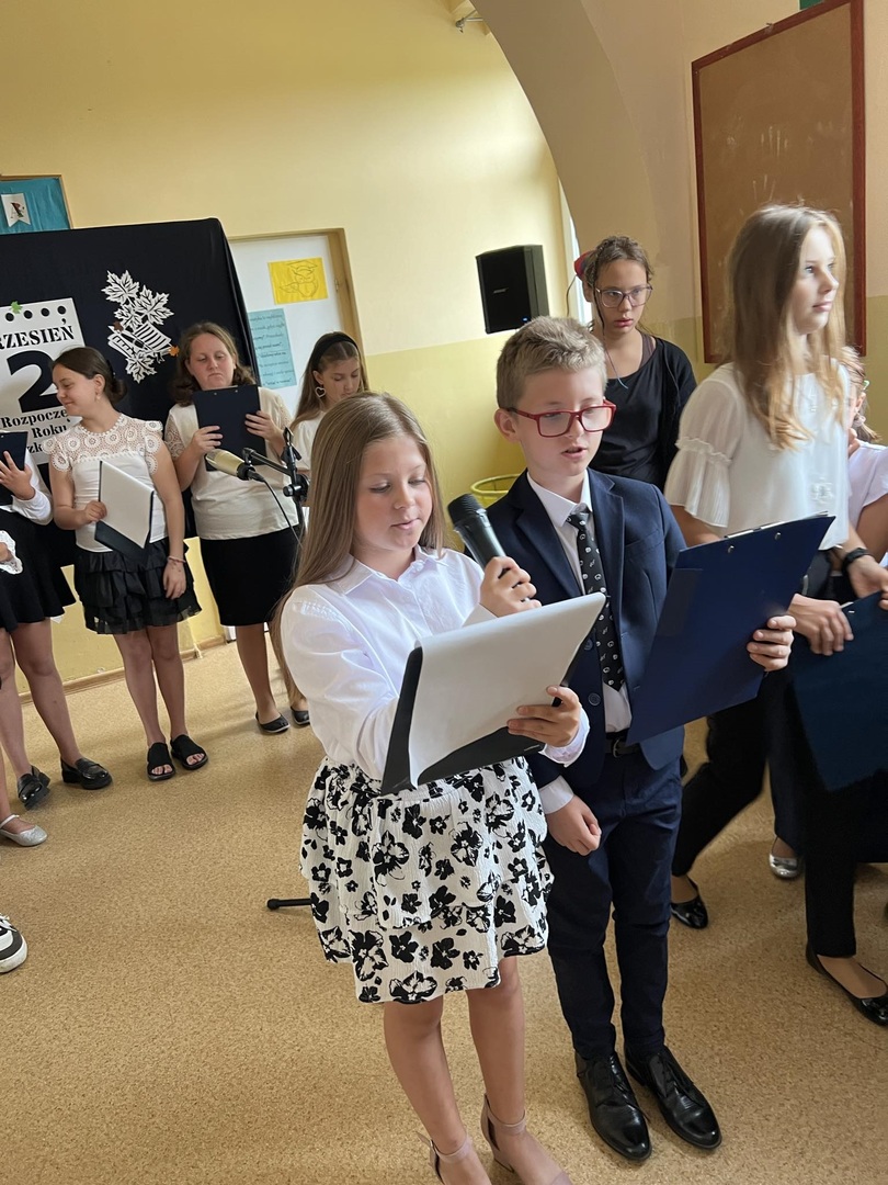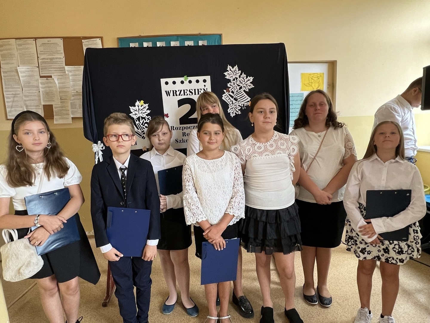 Po długich wakacjach przyszła pora na powrót do szkoły, zabrzmiał pierwszy dzwonek. Pani Dyrektor Beata Cieślak uroczyście powitała zgromadzonych uczniów, nauczycieli oraz rodziców, nie zabrakło serdecznych życzeń na nowy rok szkolny. Wszyscy zgromadzeni wzięli udział w uroczystym apelu. Minutą ciszy uczczono kolejną rocznicę wybuchu II wojny światowej. Akademię uświetnił występ uczniów z klasy 5 pod czujnym okiem Pani Marzeny Majtczak i oprawą muzyczną Pani Joanny Majtczak. Po zakończeniu uroczystości uczniowie udali się do sal lekcyjnych na pierwsze powakacyjne spotkanie z wychowawcami. Wszystkim uczniom życzymy wytrwałości w realizacji celów, sukcesów oraz powodzenia w zdobywaniu wiedzy i nowych umiejętności.