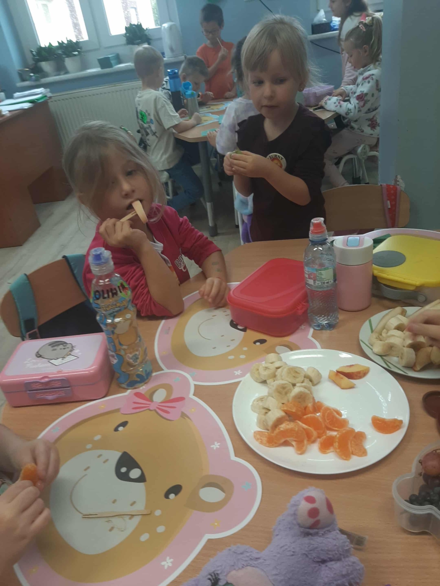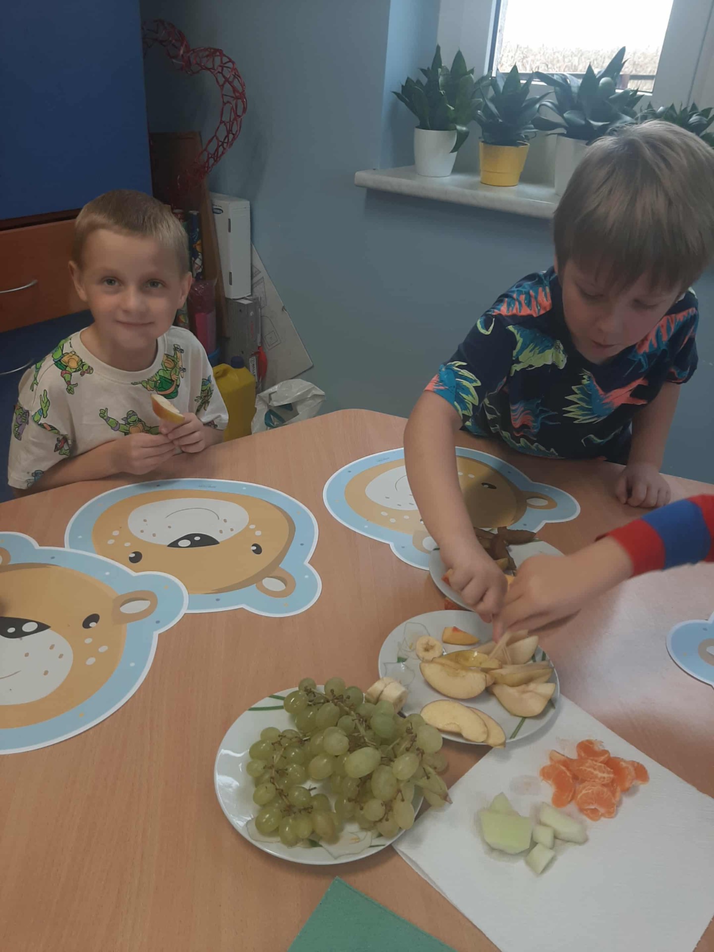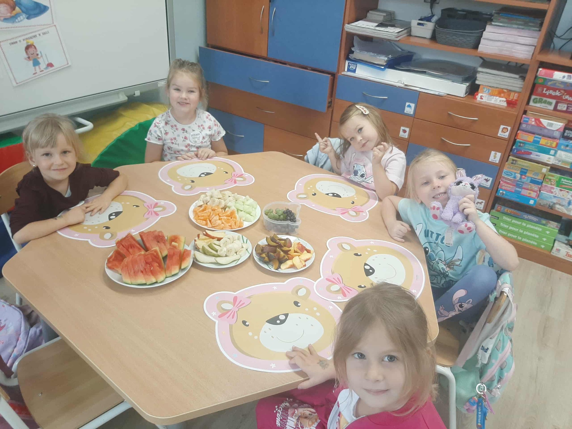 W minionym tygodniu Słodziaki uczestniczyły w zajęciach o owocach. Dowiedziały się jak dbać o zdrowie poprzez codzienne wybory żywieniowe. Nie zabrakło zabawy twórczej - dzieci wykonały piękne prace plastyczne, urządziły owocowy kącik, a na koniec była ,,Owocowa uczta"- uczta dla zmysłów. Dzieci odkrywały nowe smaki, wąchały i degustowały różne owoce. To był smakowity dzień.