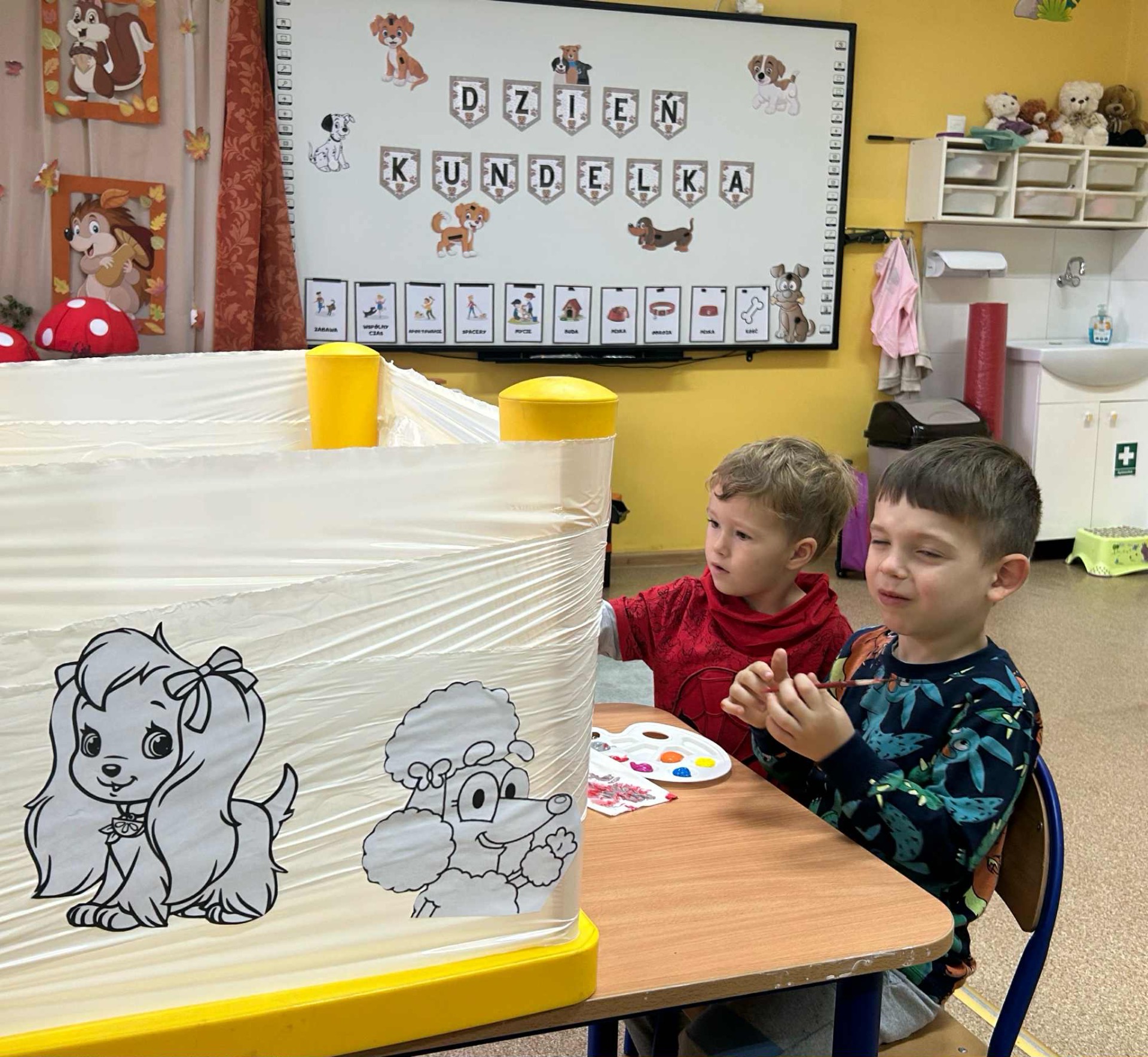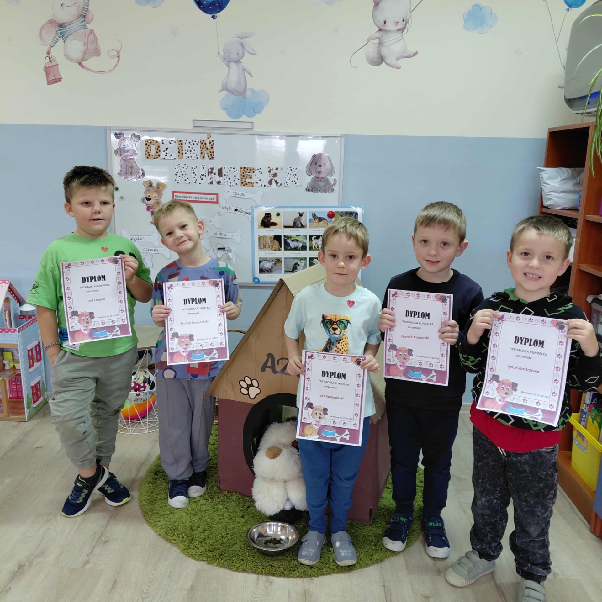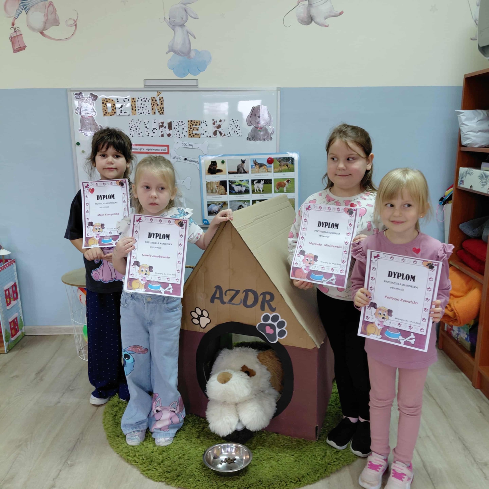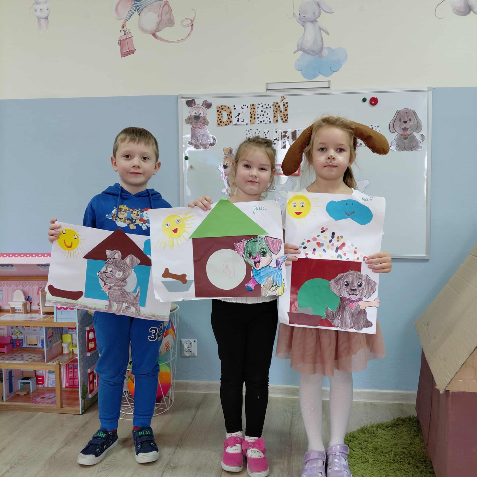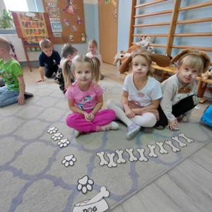 W związku z tym przedszkolaki poznały różne rasy psów, rolę psa w życiu człowieka orazobowiązki opiekuna psa. Dowiedziały się jak zadbać o swojego pupila aby czuł się bezpiecznie i szczęśliwie. Były gry, zavawy ruchowe, działalność plastyczna. Nie zabrakło pamiątkowych zdjęć.