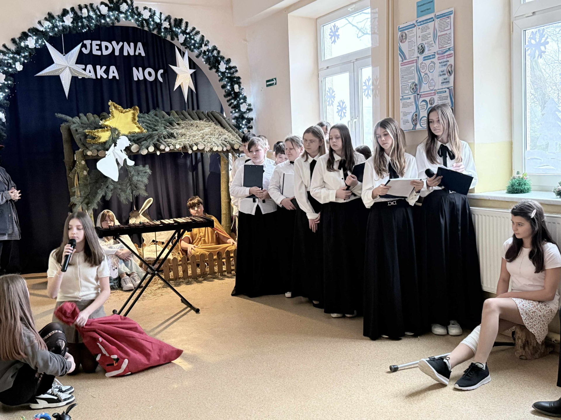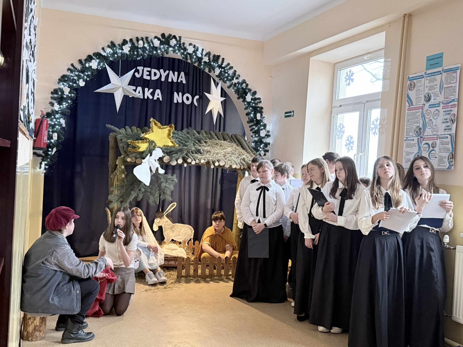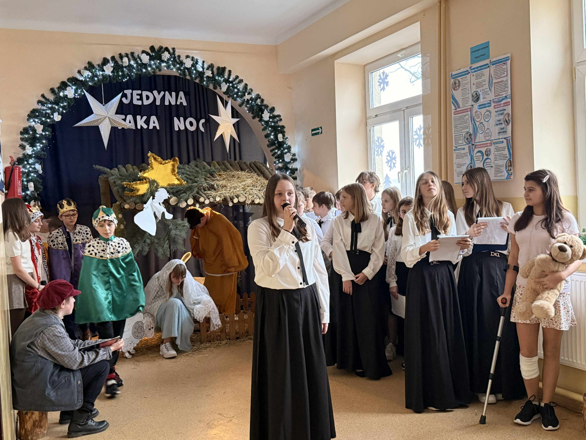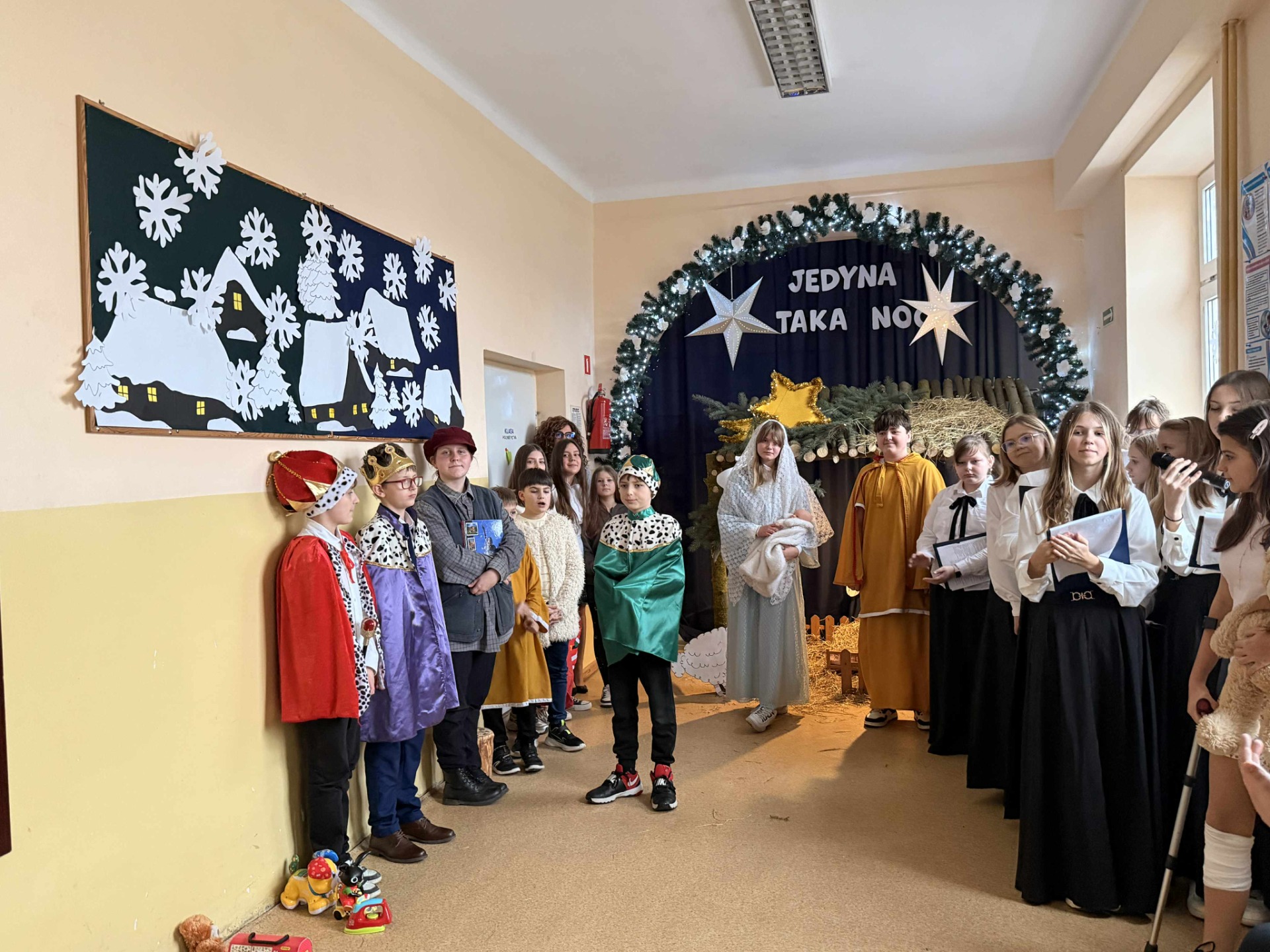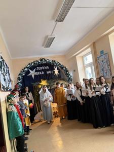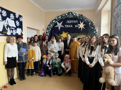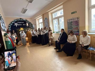 18 grudnia 2025 roku w naszej szkole odbyła się wyjątkowa uroczystość – Jasełka pt. „Jedyna taka noc”, które wprowadziły całą społeczność szkolną w atmosferę nadchodzących Świąt Bożego Narodzenia. Na początku spotkania pani Dyrektor Beata Cieślak serdecznie powitała zaproszonych gości – Michał Łuczak - wójt gminy Kutno oraz Elżbietę Koralewską -Kowalczyk – Sekretarz Gminy Kutno, rodziców oraz uczniów, nauczycieli i pracowników szkoły, dziękując wszystkim za obecność i wspólne świętowanie tego szczególnego czasu. Po oficjalnym powitaniu odbyły się piękne Jasełka zatytułowane „Jedyna taka noc”, przygotowane przez panią Edytę Rożnowską oraz panią Małgorzatę Ambroziak. O oprawę muzyczną zadbała pani Joanna Majtczak wraz z chórem „Wroczyńskie nutki”. W przedstawieniu wystąpiły dzieci z klas 6, 5 i 3, które z dużym zaangażowaniem i wzruszającą grą aktorską zaprezentowały współczesną historię narodzin Jezusa. Po zakończeniu Jasełek głos zabrali zaproszeni goście, którzy skierowali do zgromadzonych ciepłe, świąteczne życzenia, podkreślając wartość wspólnoty, tradycji oraz wzajemnej życzliwości. Występ uczniów dostarczył wielu wzruszeń i radości, przypominając o istocie świąt oraz sile wspólnego przeżywania tych wyjątkowych chwil. Uroczystość przebiegła w serdecznej i rodzinnej atmosferze, stając się pięknym podsumowaniem mijającego roku oraz wspaniałym wprowadzeniem w czas Bożego Narodzenia. A jutro ciąg dalszy świętowania, bowiem odbędą się wigilie klasowe.