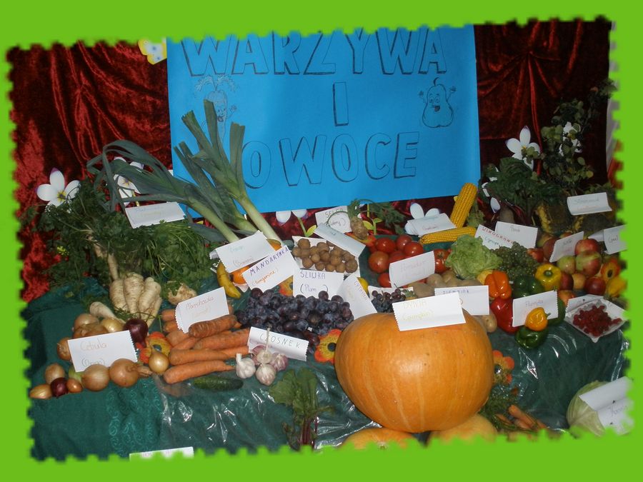 W ostatnich dniach w naszej szkole można było oglądać wystawę warzyw i owoców przygotowaną przez uczniów naszej szkoły. Klasa czwarta pod opieką pani Magdaleny Domżał wykonała podpisy dla każdego z okazów podpisy w języku polskim i angielskim. W czwartek studentka dietetyki Uniwersytetu Łódzkiego Katarzyna Janiak przygotowała prezentacje na temat zasad zdrowego żywienia. Uczniowie mieli możliwość uzupełnienia piramidy zdrowia. Na zakończenie wystawy uczniowie mogli zjeść przyniesione warzywa i owoce. Na zdrowie