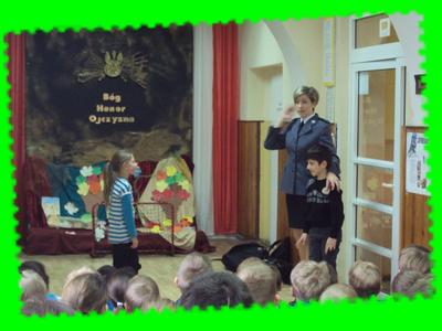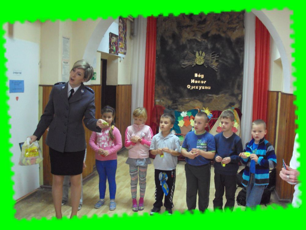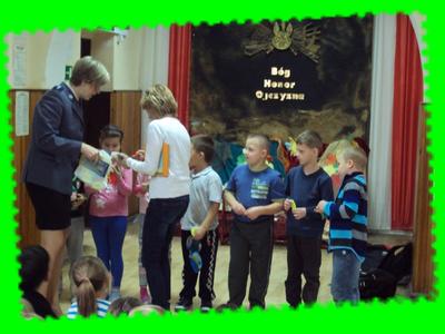 We wtorek tj. 5 listopada 2O13 roku w ramach programu Odblaskowe Pierwszaki nasza szkoła gościła funkcjonariusza policji. Pani policjant na spotkaniu z klasami O VI przypomniała ogólne zasady bezpieczeństwa w drodze do i ze szkoły, w domu i gospodarstwie. Uczniowie bardzo chętnie odpowiadali na zadawane pytania i dzielili się swoimi spostrzeżeniami i doświadczeniami. Na zakończenie spotkania każdy pierwszak otrzymał odblask a prowadzący słodki upominek.